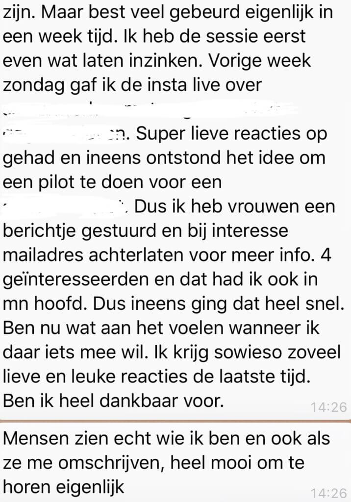 Dit traject is voor eigenzinnige Vrouwen en op basis van wederzijdse klik.